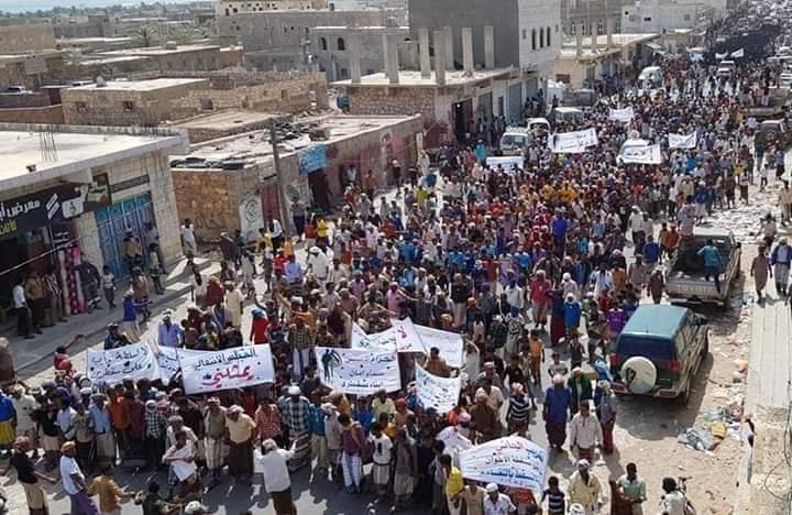 On Sunday, hundreds of demonstrators marched through Hadibu, the island’s capital, chanting slogans against the Emirati militias and in support of the Yemeni government.