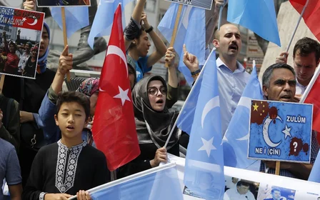 "Qurans are burned, mosques were closed down, Islamic theological schools, madrasas were banned, religious scholars were killed one by one. Despite all this, Muslims stay quiet,” he wrote in Turkish, using the East Turkistan flag as the background for the post.