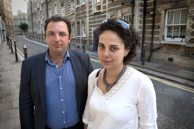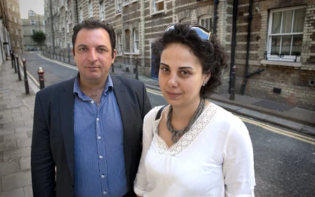 Mazen Darwish, pictured with wife and fellow rights campaigner Yara Bader in London (MEE/Angeles Rodenas)