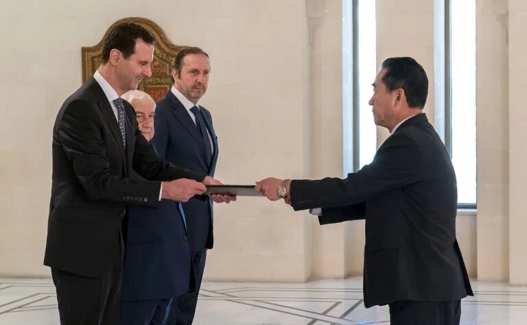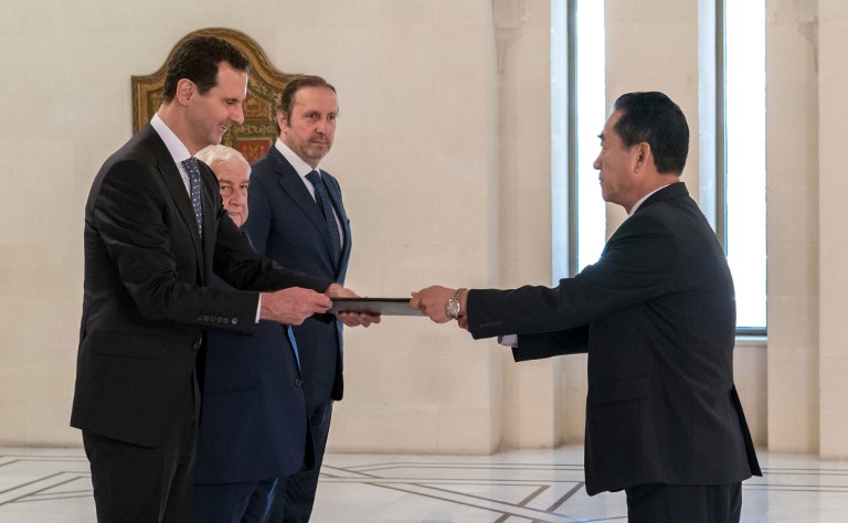 The Syrian president meets with North Korea's ambassador in Damascus (SANA/AFP)
