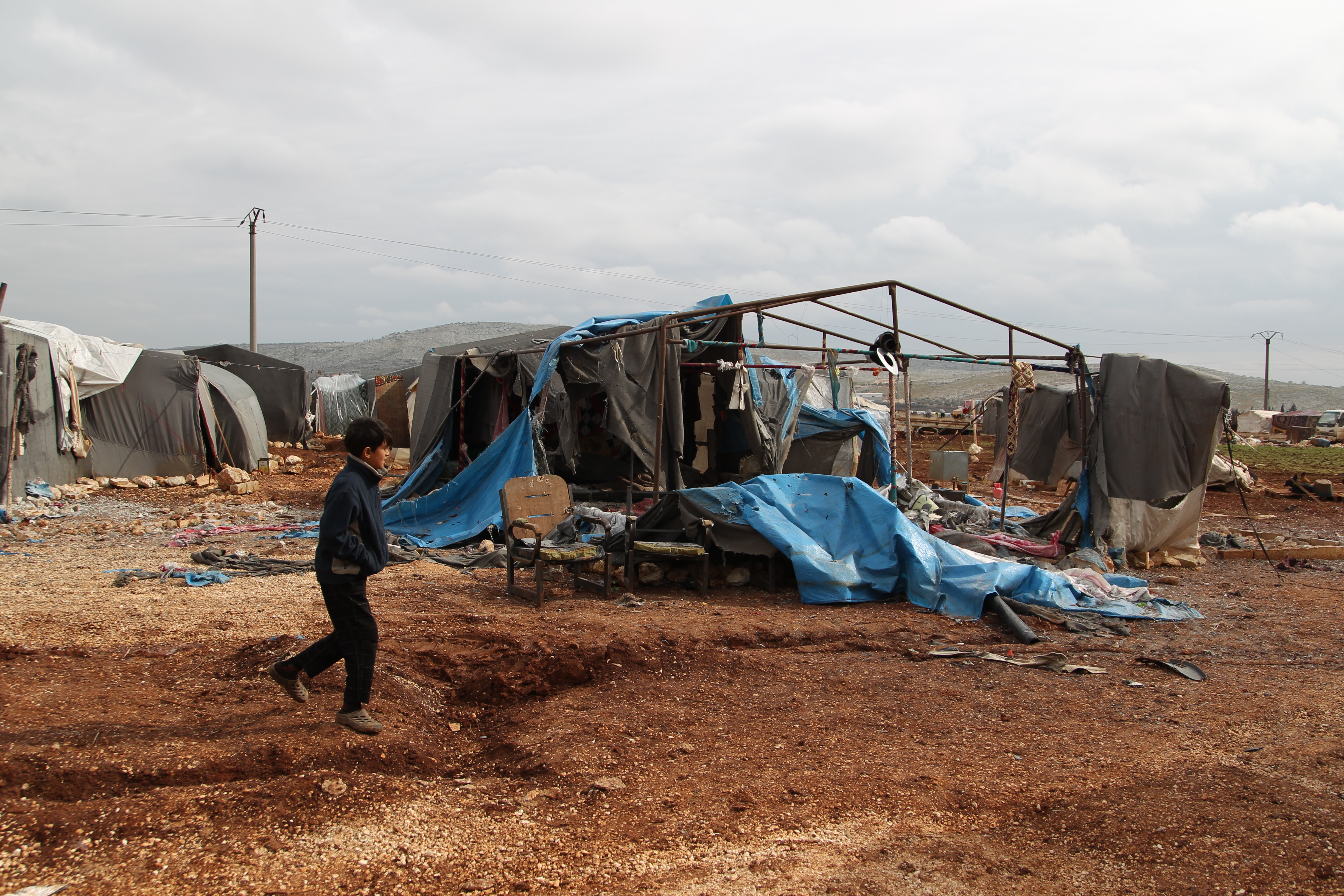 But when Mohammed sat down on Friday with his extended family, hoping to escape the winter chill in the Faheel al-Izz camp for internally displaced people (IDP) near the town of Sarmada, the shelling began.