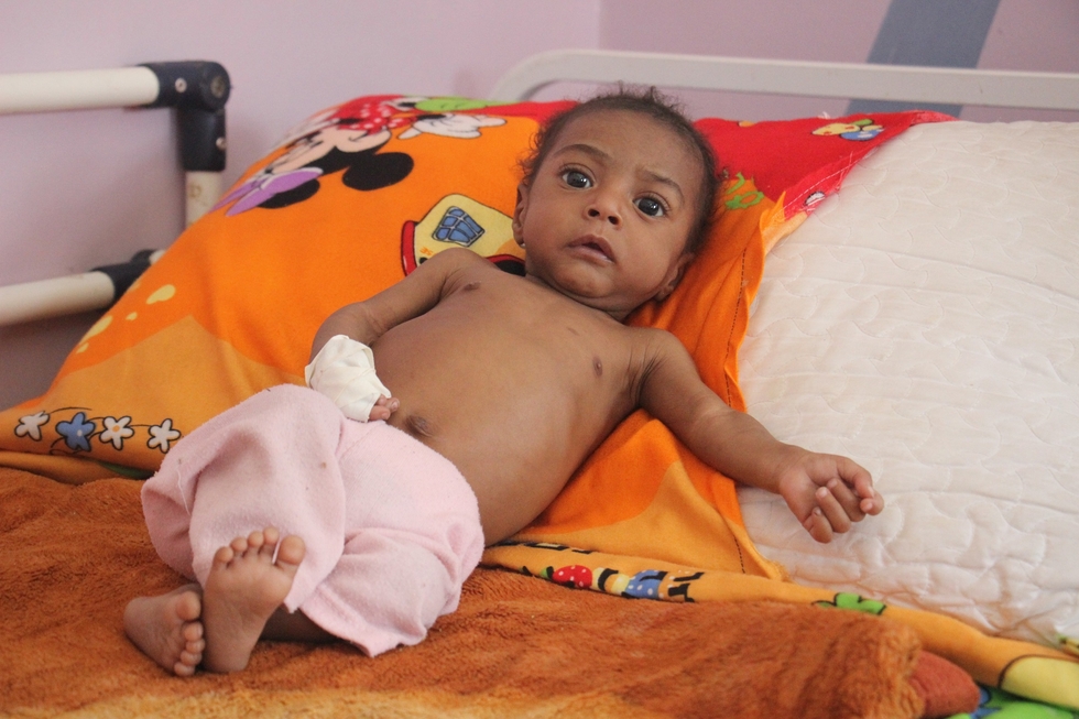 At an age when he should be toddling around and bursting with energy, Alawi’s distended belly is a telltale sign of the severe acute malnutrition which would have ended his life without urgent medical treatment.