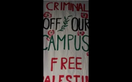 Protesters renamed the Milstein Center to honour Dr Abu Safiya who risked his life to keep the Kamal Adwan hospital functioning, as it was besieged by Israeli shelling and drones and its staff were targeted by Israeli snipers.