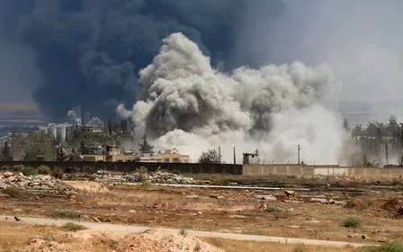 Barrel bomb 'double tap' kills at least 15 funeral mourners in Syria's Aleppo