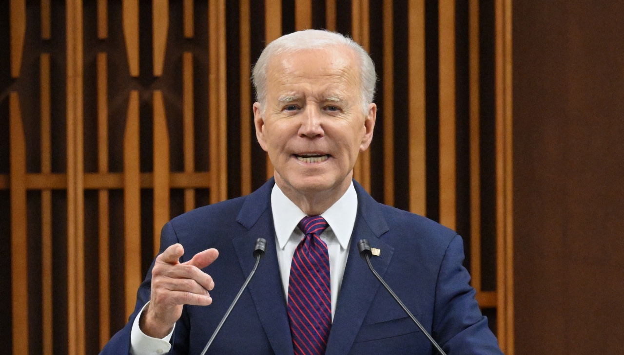 US President Joe Biden addresses the Canadian Parliament in Ottawa, Canada, on 24 March 2023 (AFP)