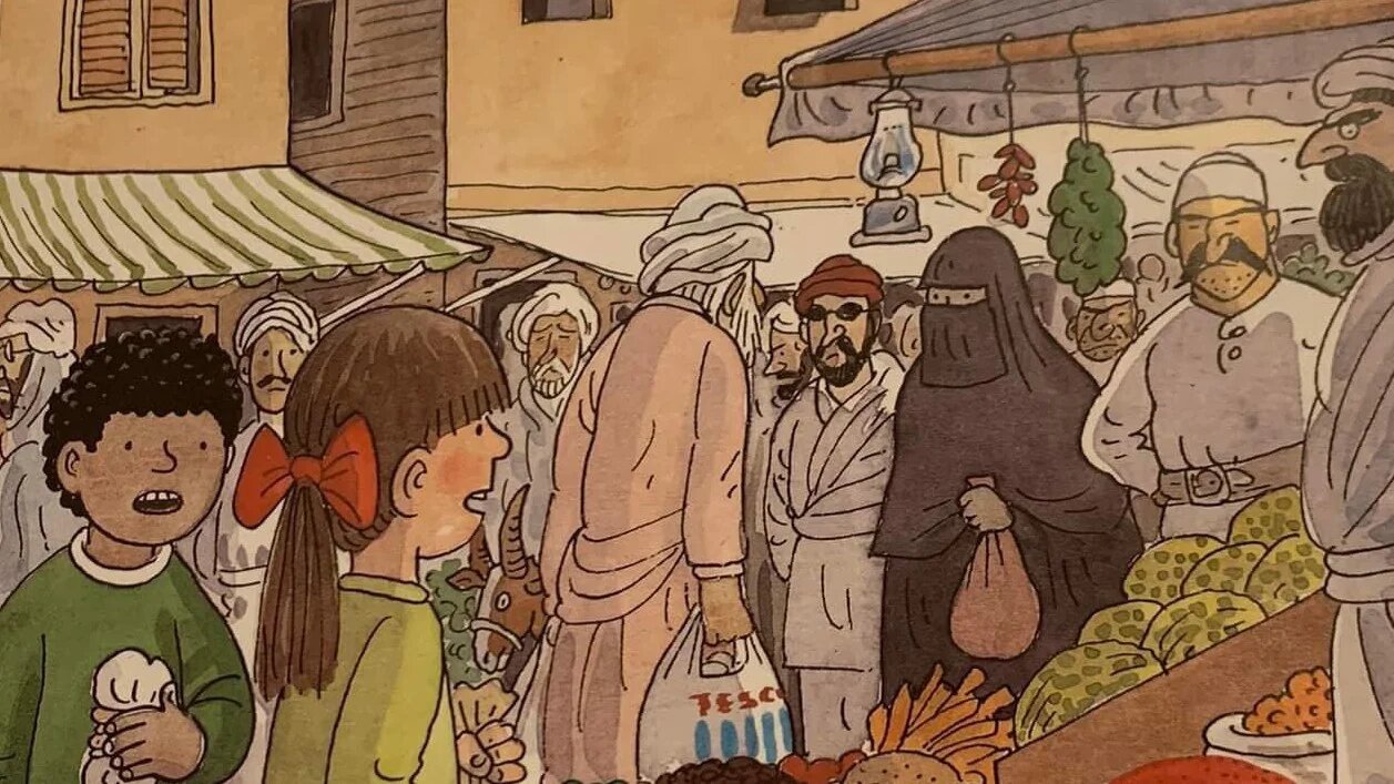 In the story, the characters are depicted in a marketplace as one of the characters points out that “the people don’t seem very friendly”. The page was shared online and sparked criticism for being “inappropriate".