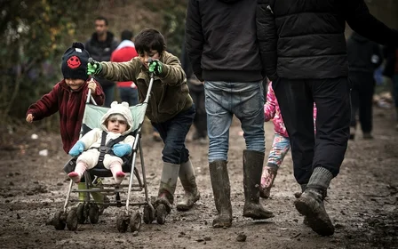 In the freezing, mud-filled migrant camp known as "The Jungle," a dozen people carried a house down the street.
