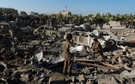 In one incident attributed to the coalition, 45 people were killed when fighter jets bombed a camp for internally displaced people in northern Yemen.