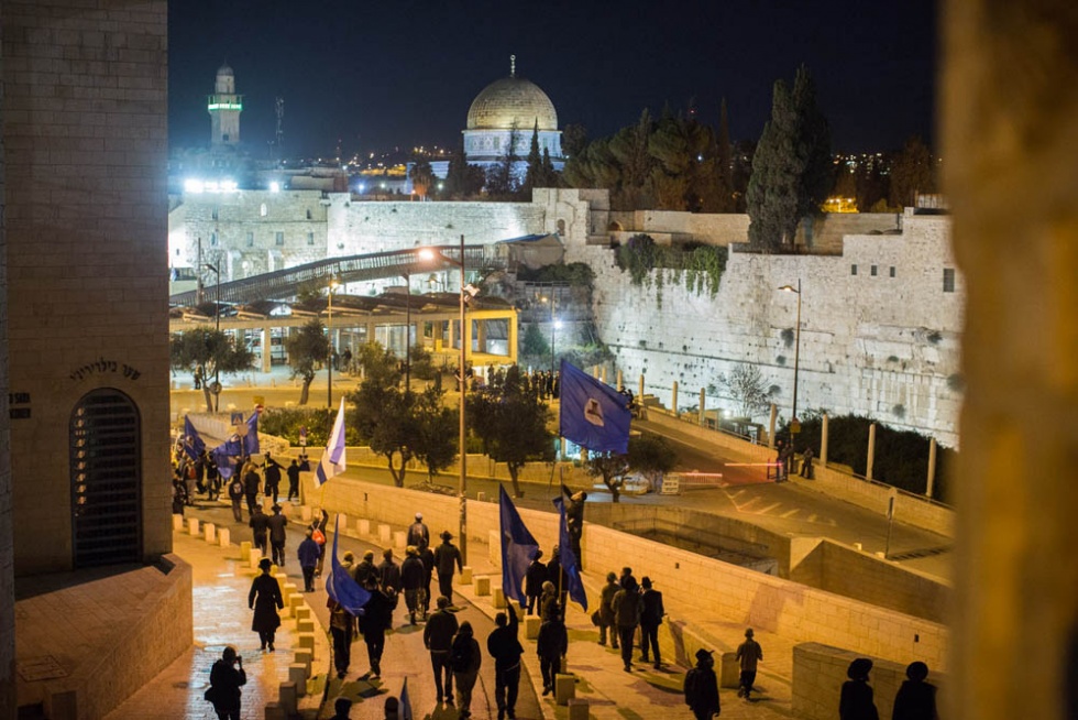 A group of around 50 Israelis march to the Western Wall a week after Yehuda Glick's attempted assassination (MEE/Oren Ziv)