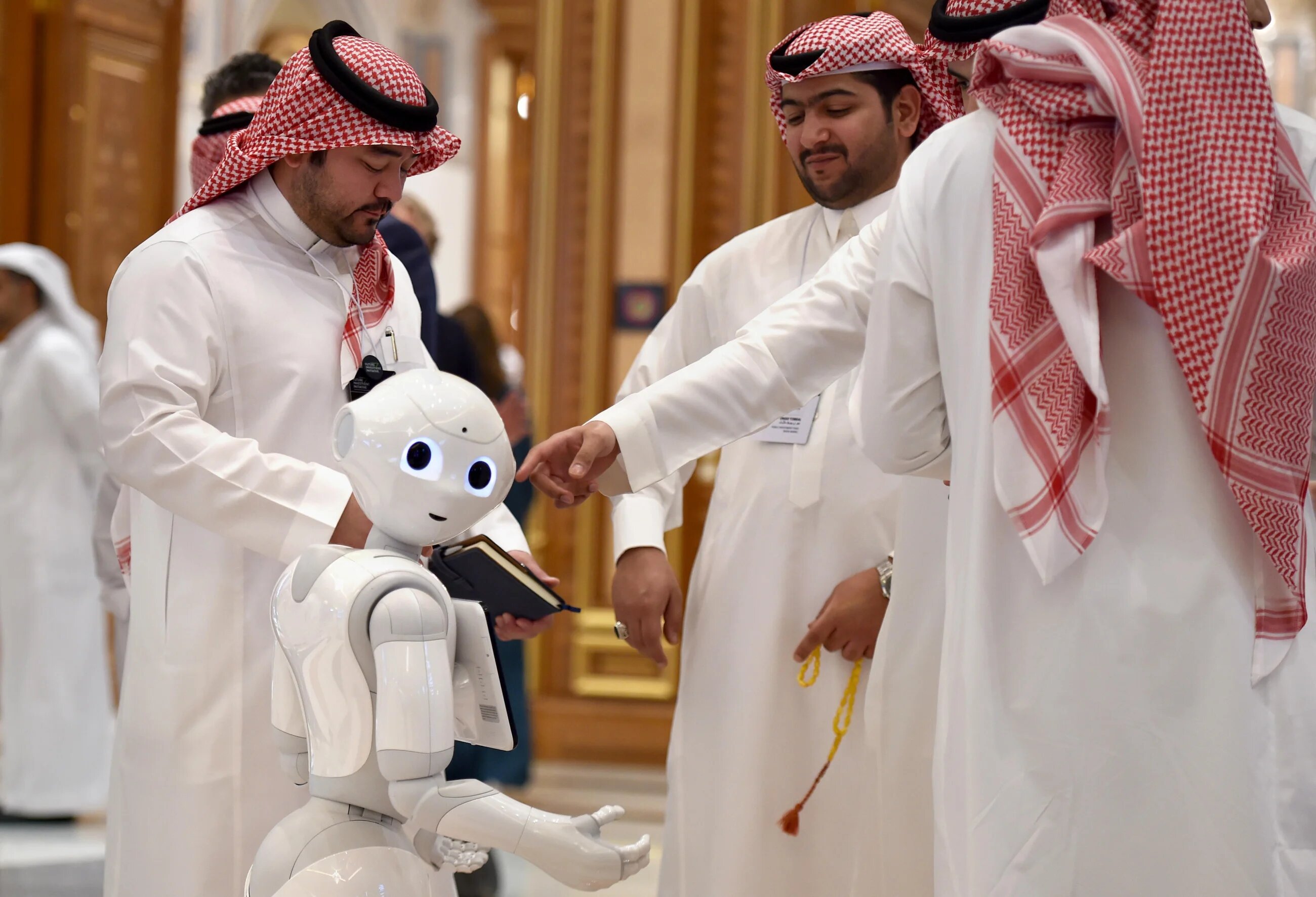 Delegates were greeted in the Saudi capital by facial recognition software, which welcomed them by name as they walked into the palatial hotel.