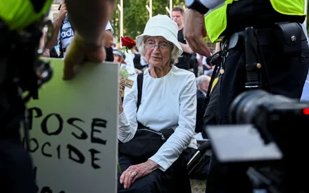 Over 500 protestors - most of them over the age of 60 - were arrested under the Terrorism Act at an action in London's Parliament Square on 9 August.