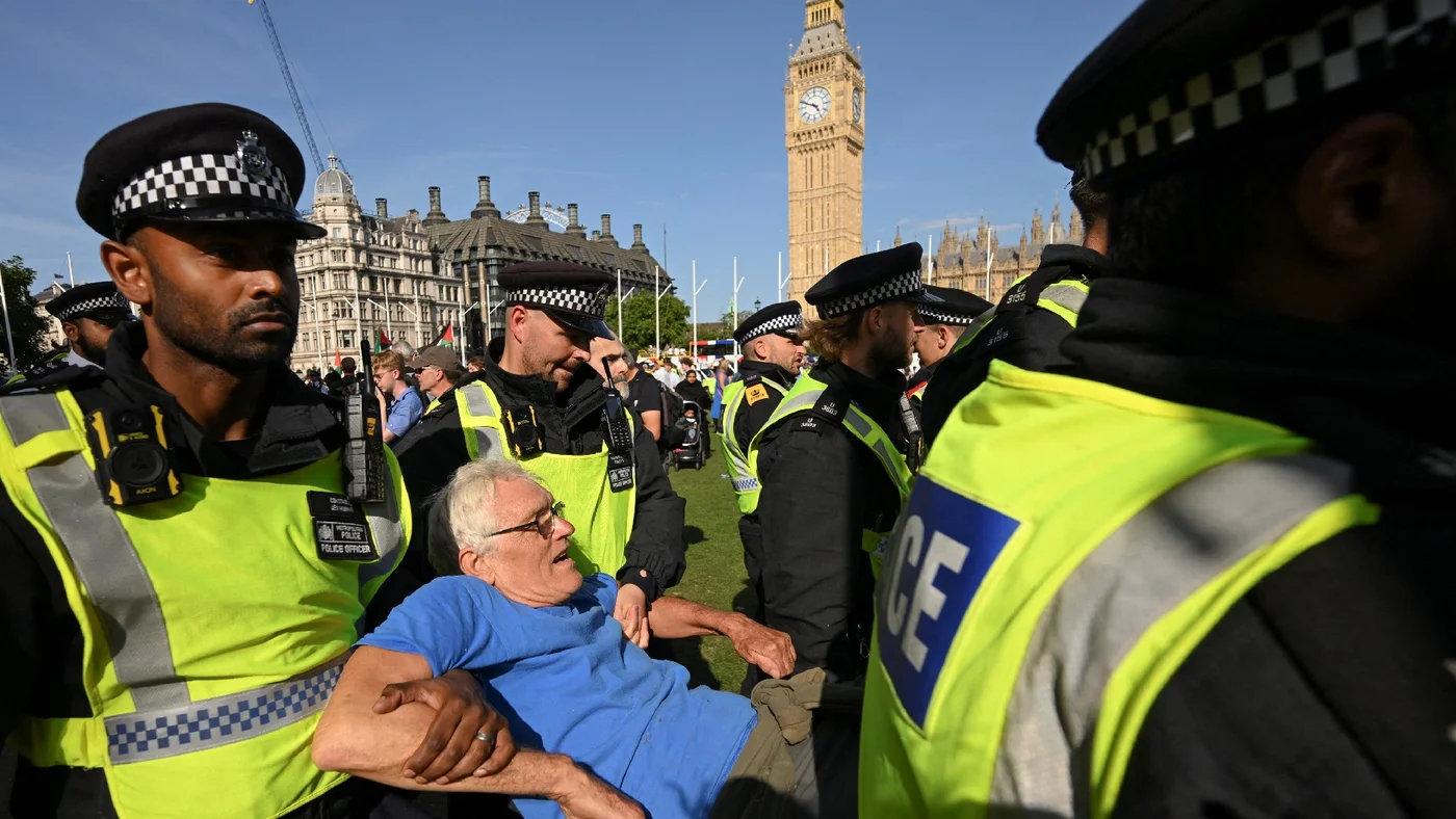 “Why the double standards?” he demanded, noting that the PSNI arrested a 74-year-old woman in Belfast for wearing a Palestine Action t-shirt during the last round of protests in August.