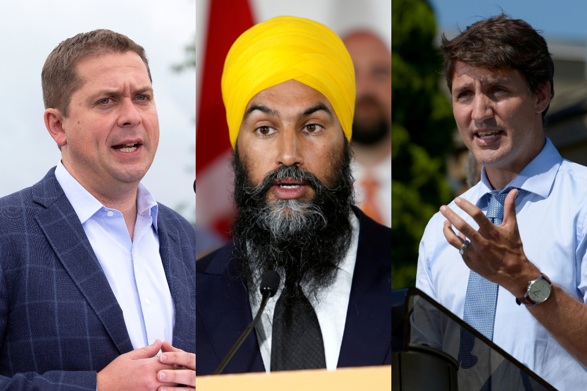 Prime Minister Justin Trudeau of the Liberal Party, the Conservatives' Andrew Scheer and Jagmeet Singh of the New Democratic Party (NDP) each spoke about Bill 21 on Wednesday, the first day of the election campaign.