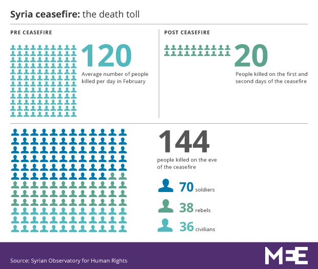 Ceasefire violations continue in Syria despite reduction in civilian deaths