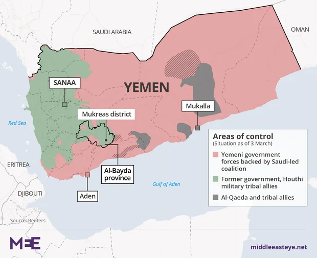 Bayda is largely controlled by Shia Houthi rebels and their allies, who have been fighting against the internationally recognised government of Abd Rabbuh Mansour Hadi. Hadi has been supported since March 2015 by a Saudi-led coalition.
