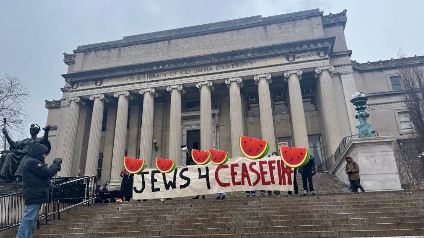 On 19 January in the afternoon, students gathered on the steps of Low Library to protest at a “divestment now” rally, organised by Columbia University Apartheid Divest, a coalition created after the university's director, Minouche Shafik, banned student organisations Students for Justice in Palestine (SJP) and Jewish Voice for Peace (JVP) in November.