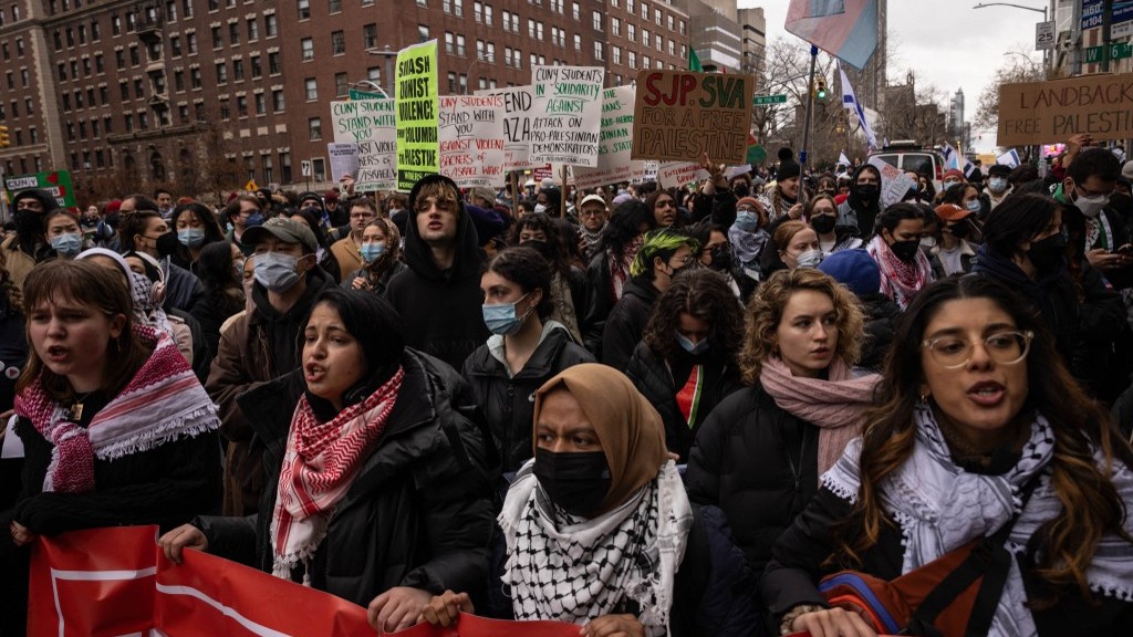 Pro-Palestinian protesters participate in an "All out for Palestine" rally at Columbia University in New York, on 2 February 2024 (AFP)