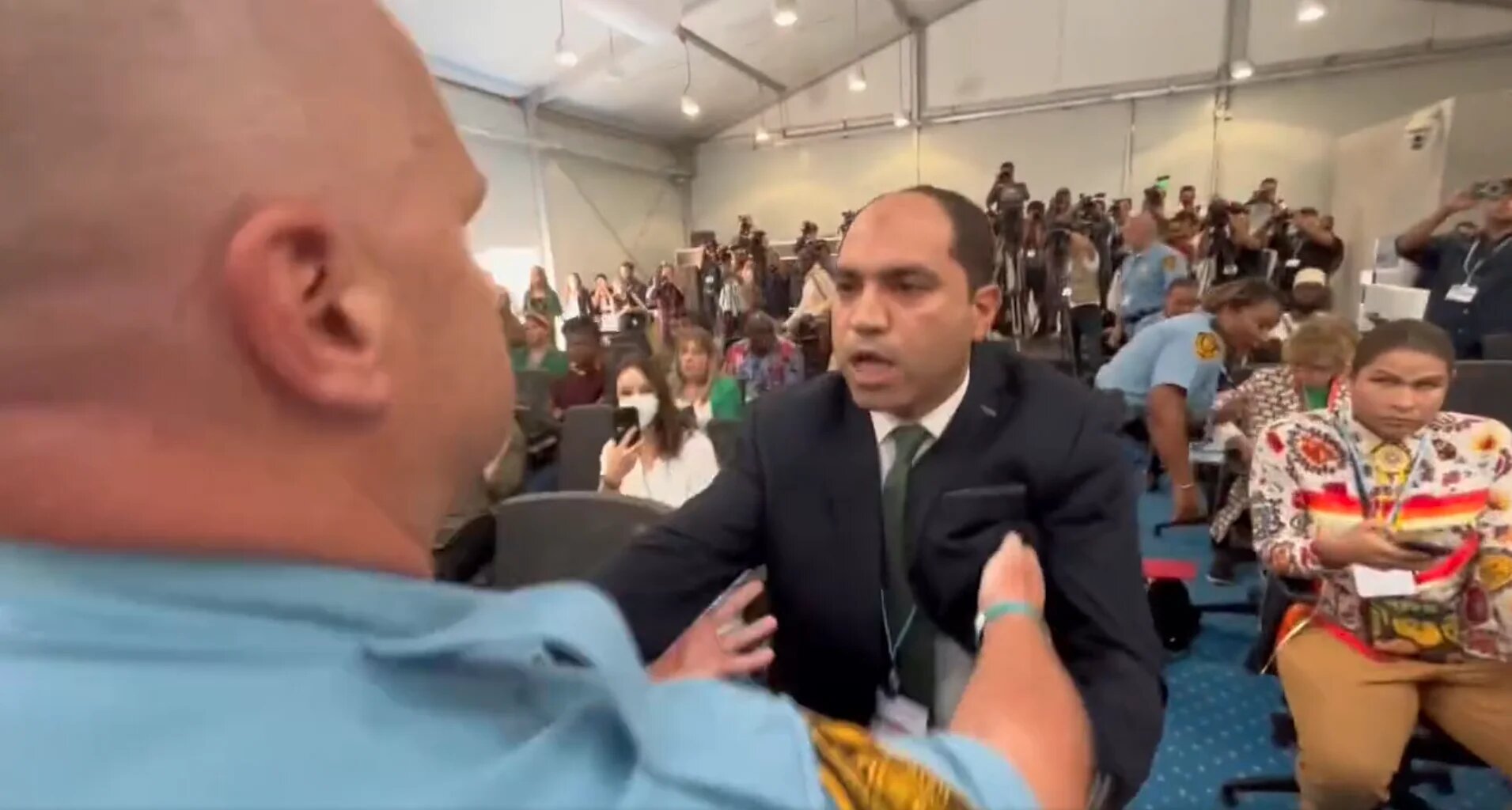 An Egyptian MP was escorted by security out of a hall at the Cop27 climate conference after heckling speaker Sanaa Seif, sister of imprisoned activist Alaa Abd el-Fattah.