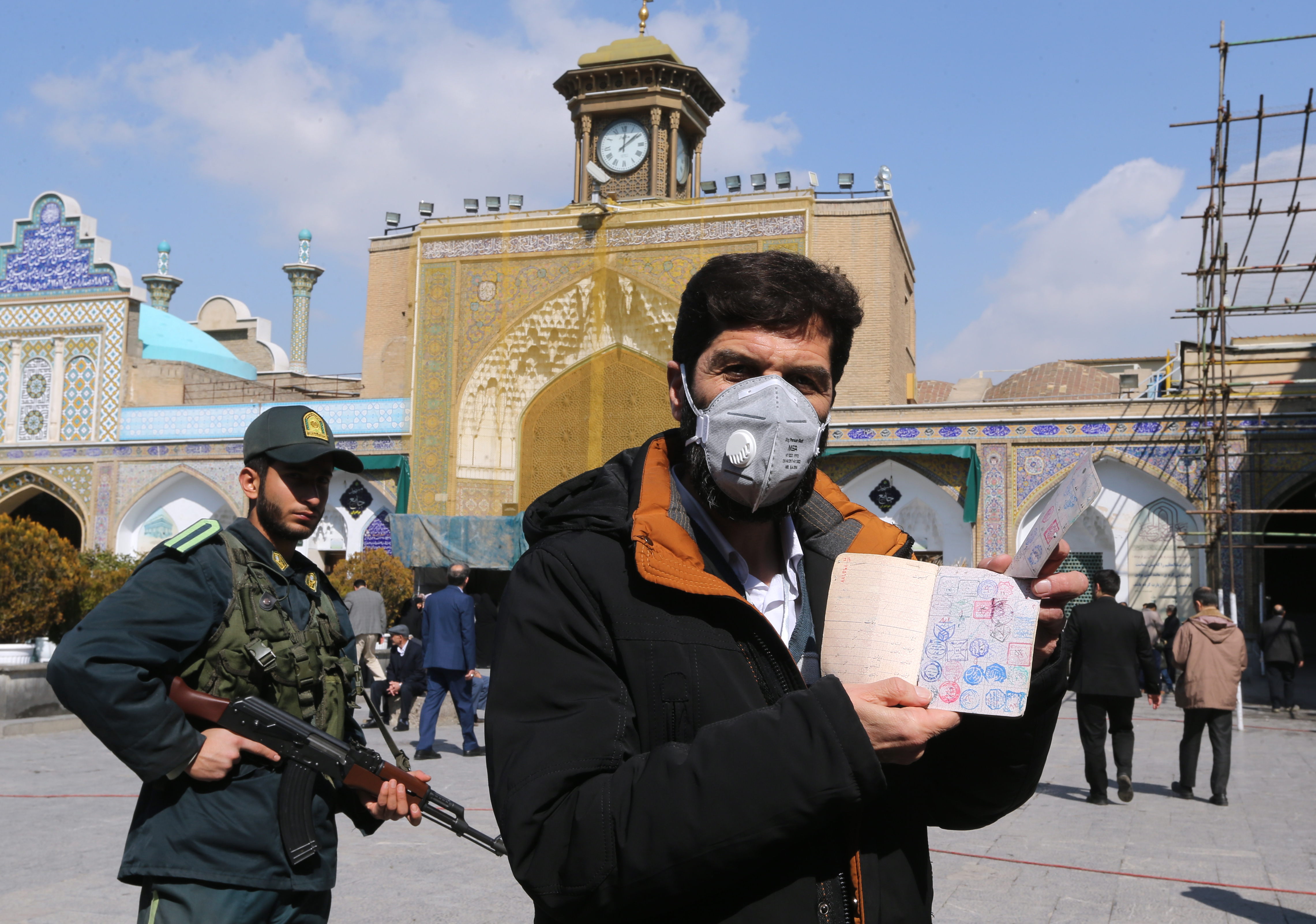 An Iranian voter wears a mask and shows his ID during parliamentary elections in Iran on 21 February (AFP/File photo)