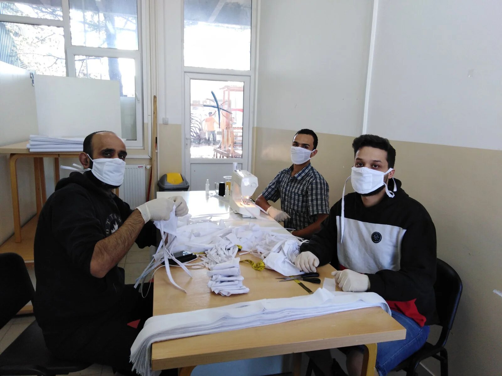 Today, with the help of other refugees, Habibi sews around 100 masks in a day and a half, helping to meet shortages.