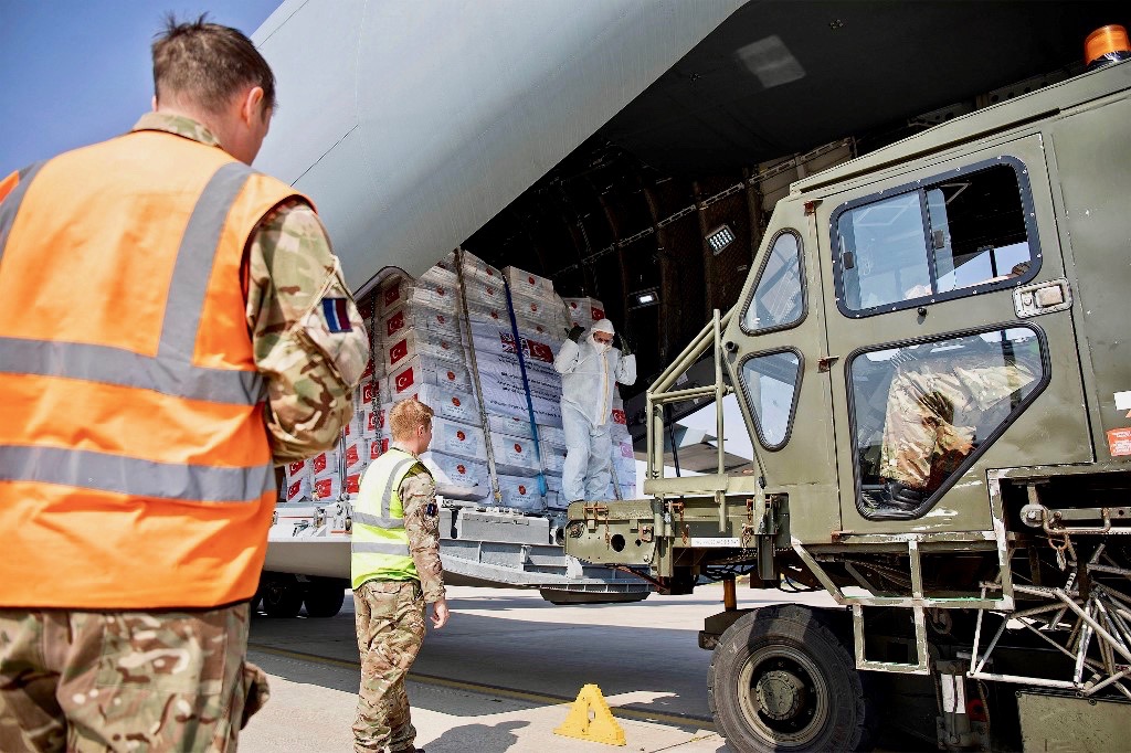 A jet from Ankara carrying personal protective items, including surgical masks, N95 industrial masks and hazmat suits landed in London on Friday afternoon, the Guardian reported.