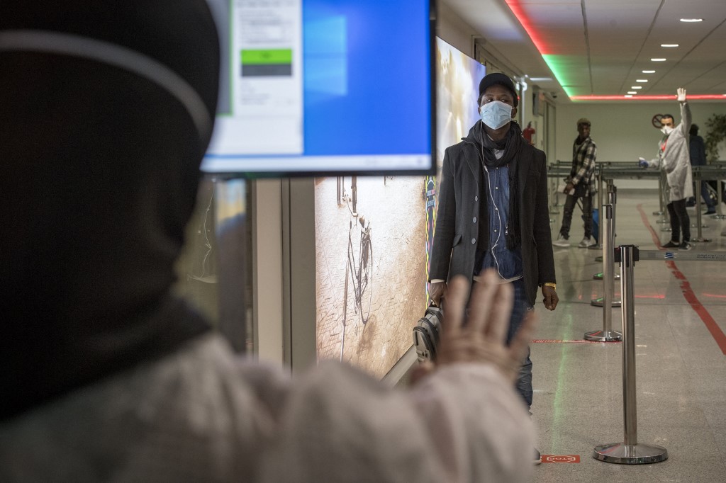 Moroccan health workers scan passengers for coronavirus at Casablanca Mohammed V International Airport on 3 March 2020 (AFP/File photo)