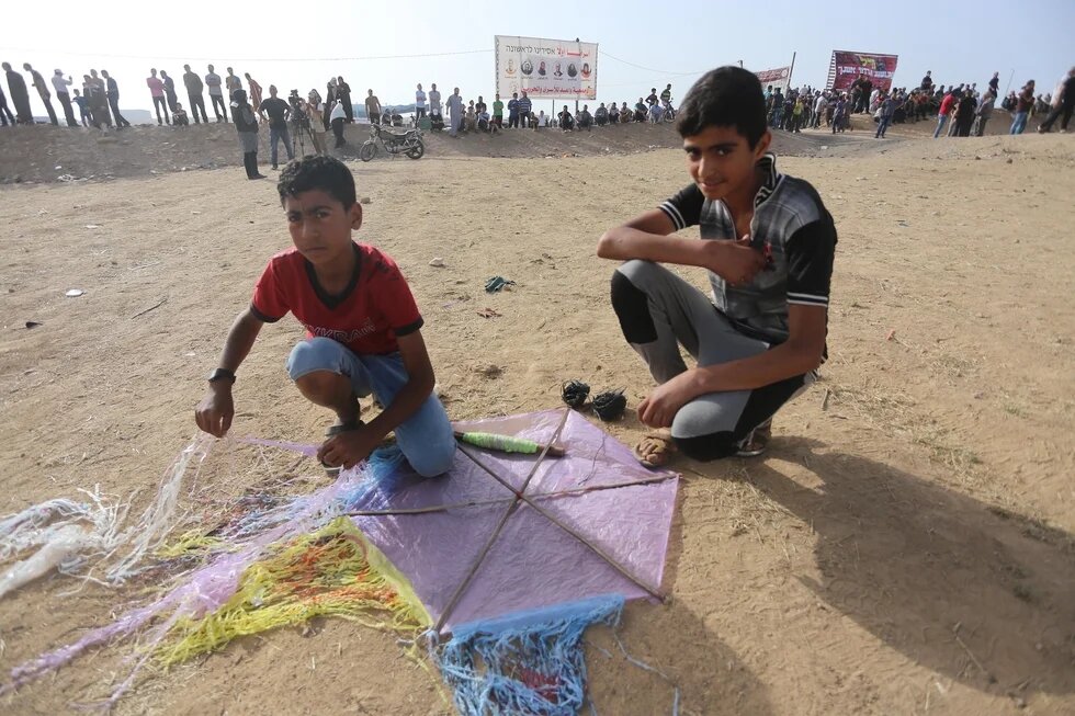 Belal Yassin, 13, said he has been attending the demonstrations daily since they started to fly colourful kites that “prove Palestinians are only seeking freedom”.