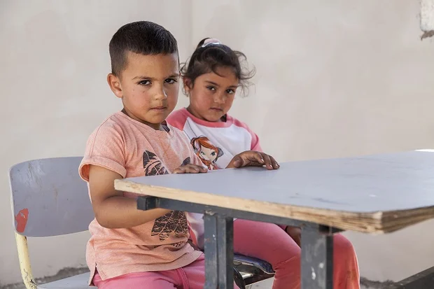 Their old school – which consisted of temporary structures and caravans - was demolished during the summer, so now the children study in a private house.