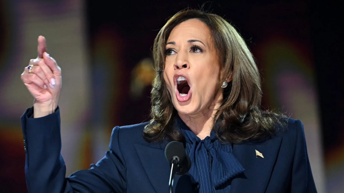 US presidential candidate Kamala Harris speaks at the Democratic National Convention in Chicago in August 2024 (AFP)