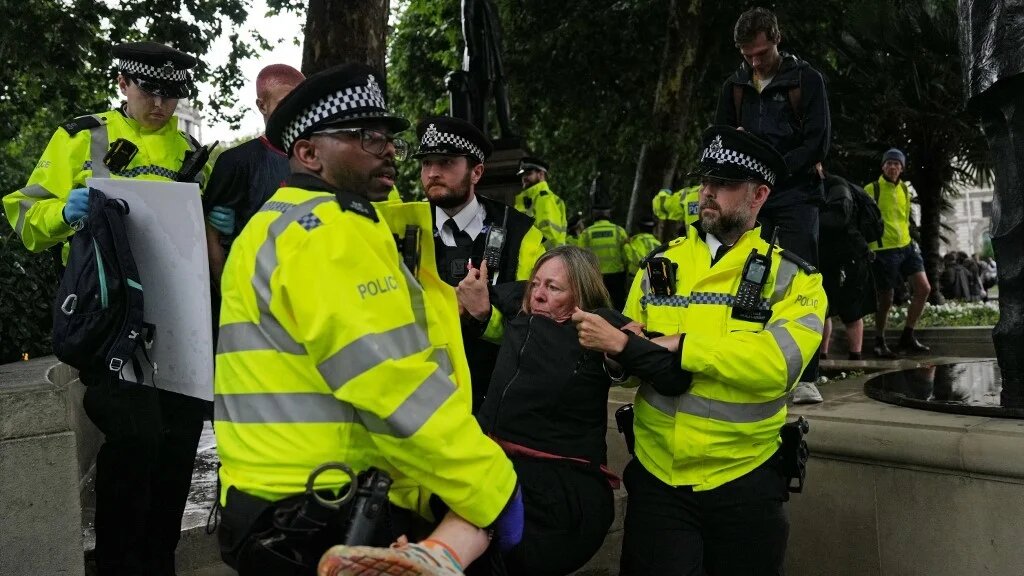 Fifty-five people have been arrested in London at a rally against the proscription of Palestine Action outside the UK parliament on Saturday, according to the Metropolitan Police.