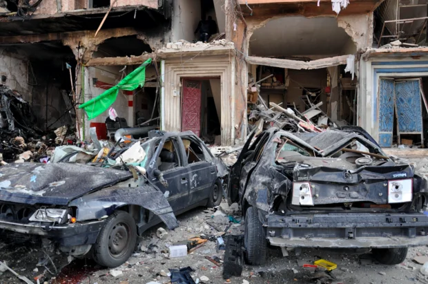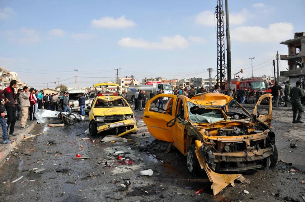 The bombings appeared to have caused extensive damage, ripping the fronts off shops surrounding the site and mangling cars and minibuses.