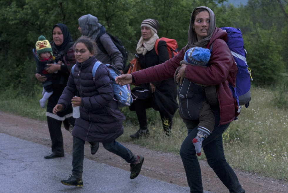 The photographer saw the group in the Macedonian town of Gevgelija, across from Idomeni in Greece where more than 10,000 migrants have been stuck for weeks in grim conditions after a series of border closures on the Balkan migrant route.
