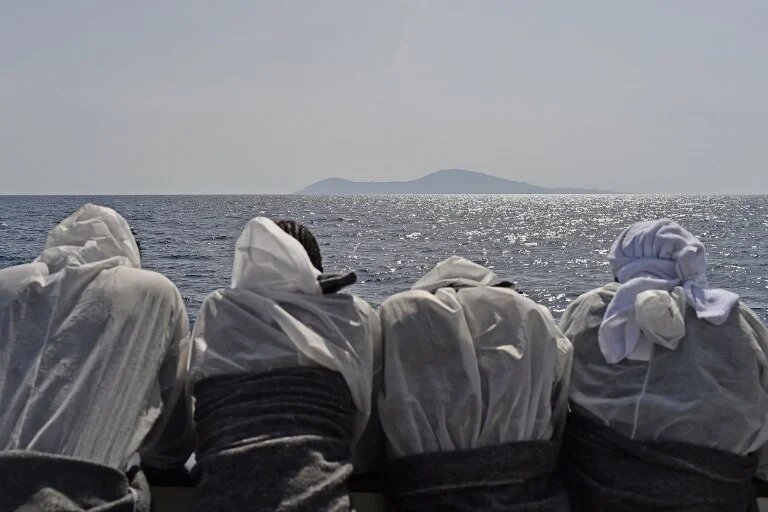 Migrants and refugees, among 10,000 rescued this week, look at Italian island of Pantelleria (AFP)