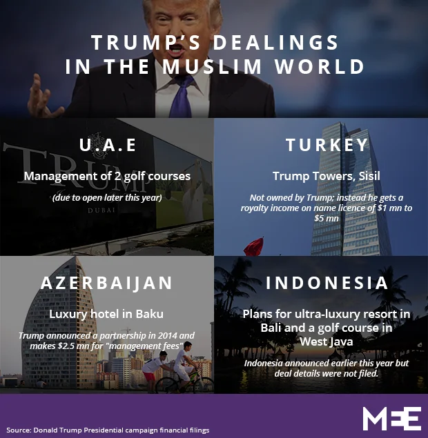 Despite repeated assaults on Muslims during his campaign, Trump has been doing business in the Middle East for years.