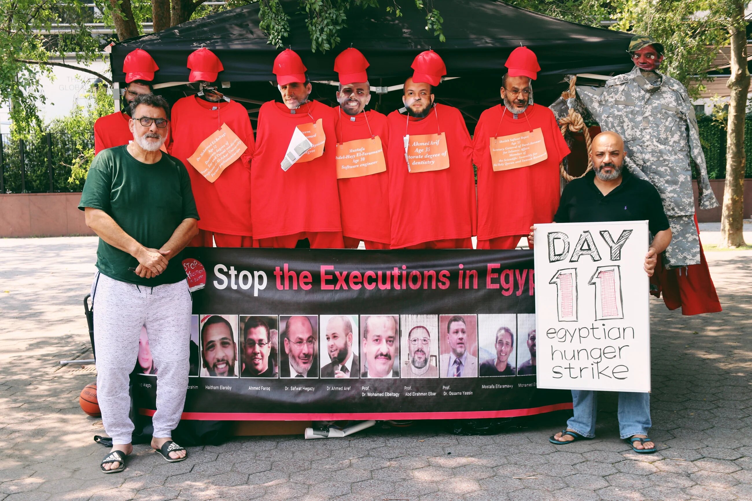 A group of American activists are staging a hunger strike near the United Nations headquarters in New York in an effort to publicly embarass and pressure Egypt into stopping politically motivated executions and death sentences.