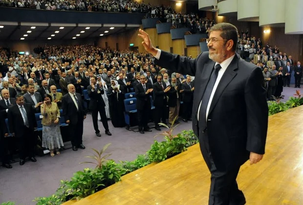 Mohamed Morsi addresses an audience in Cairo on 10 June 2013 (AFP