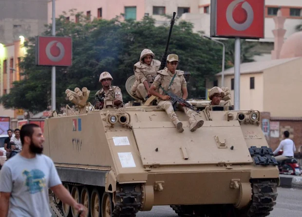 Egyptian soldiers sit on top of an personnel carrier in a Cairo street on July 3 2013 (AFP)