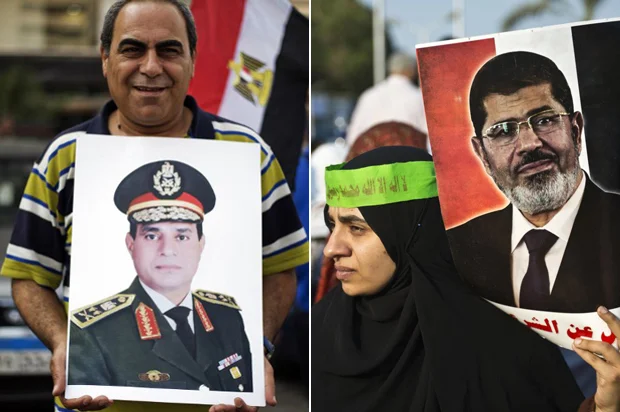 Rival supporters for Sisi (left) and Morsi gather on the streets of Egypt (AFP)