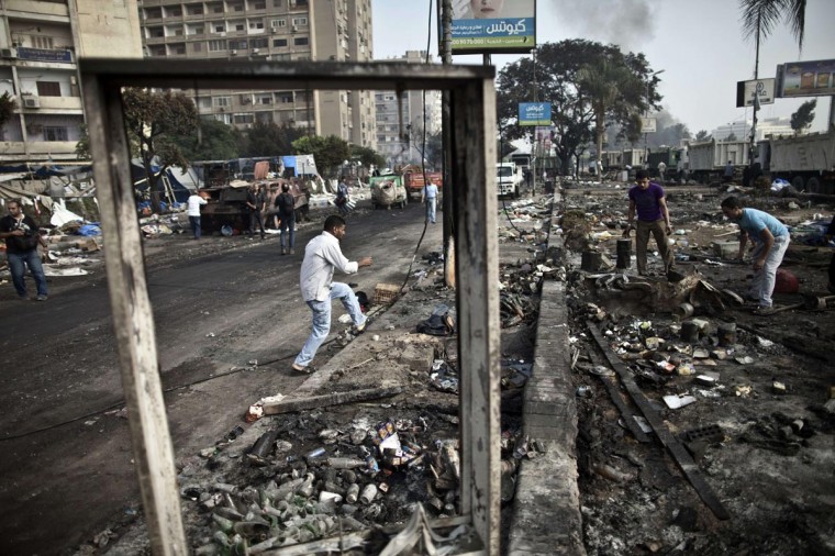 Egyptians search through the debris at Rabaa al-Adawiya square in Cairo on 15 August 2013 after the massacre (AFP)