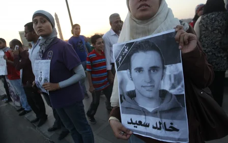 Saeed, 28, is possibly one of the most famous torture victims in Egypt’s history. He was tortured to death by two police officers in Alexandria on 6 June 2010, his murder is believed to be in retaliation for a video he posted online showing officers distributing loot and drugs seized during police raids among themselves.