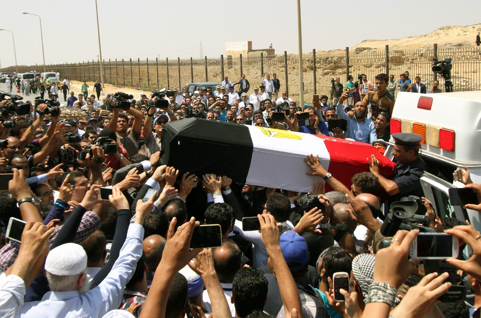 President Abdel Fattah al-Sisi, al-Azhar's Grand Imam Ahmed al-Tayeb, Defence Minister Sedki Sobhi and Egyptian-British surgeon Sir Magdi Yacoub attended one procession at a military complex.