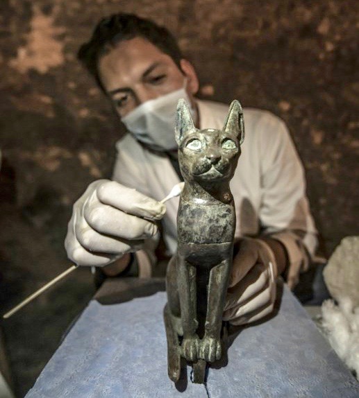 A bronze statue dedicated to the cat goddess Bastet, along with 100 wooden, gilded statues of cats and dozens of cat mummies were also unearthed, AFP said.