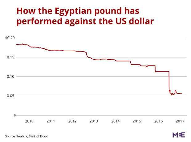 The Egyptian pound, which during its heyday was traded at 8.8 per dollar, has weakened to more than 18 pounds.