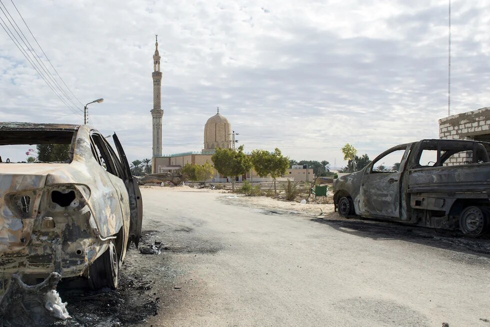 The Rawda mosque, roughly 40 kilometres west of the North Sinai capital of El-Arish, after a gun and bombing attack (AFP)