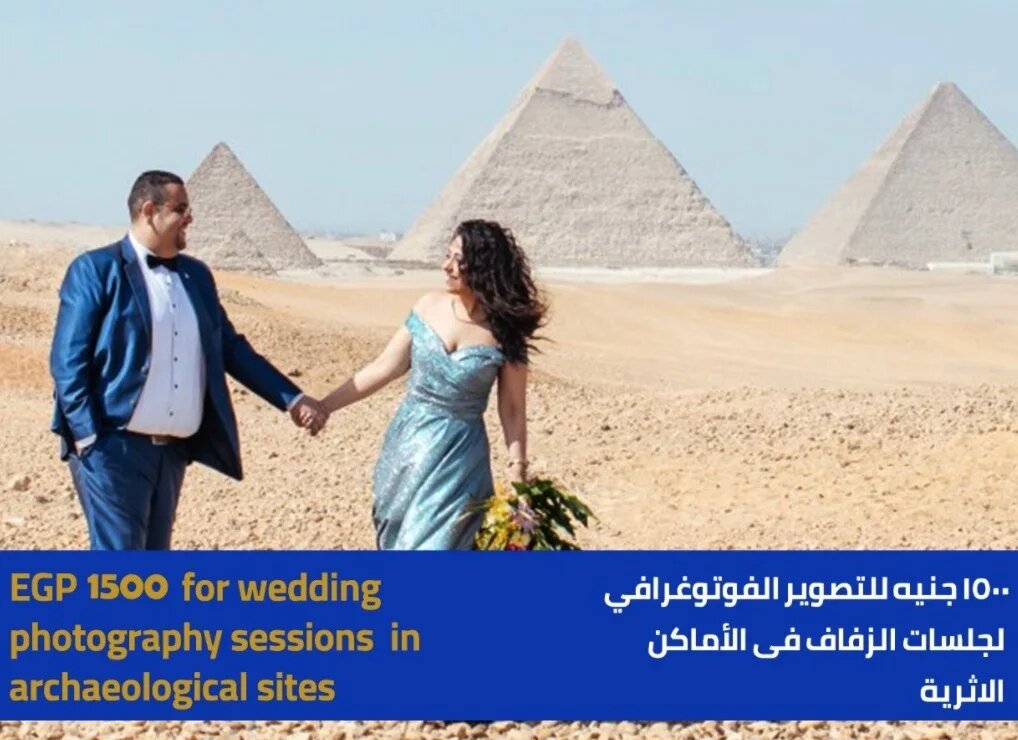 “The Ministry of Tourism and Antiquities has set the price of photography for wedding parties in all archaeological locations around Egypt, after agreeing this with specialist authorities, to 1,500 Egyptian pounds per hour,” the tweet said.