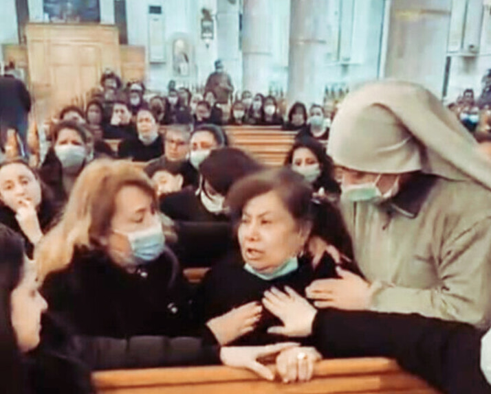 Lotfi's mother during Wednesday's mass at the Minya Catholic Church in Upper Egypt (supplied)