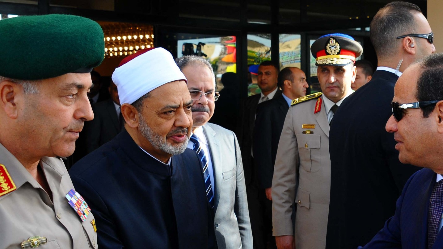 In this file photo, Egyptian Presidency shows Egyptian President Abdel Fattah al-Sisi (R) is greeting the Grand Imam of al-Azhar Sheikh Ahmed al-Tayeb on the first day of the Eid al-Adha holiday on 24 September 2015 in Cairo (AFP)