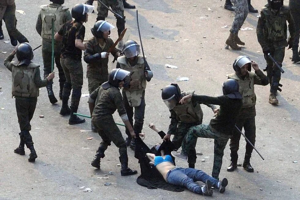 The assault gained particular attention throughout Egypt because photographs showed her being stripped naked to the waist during the beating.
