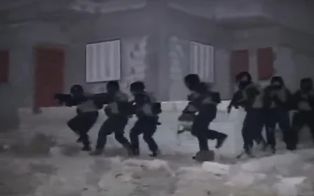 A cameraman can also be seen taking footage of one body. A soldier then appears to remove a gun from next to the body when the cameraman finishes filming.