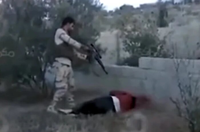 One of the soldiers then shoots him in the head. A second soldier then fires at the body on the ground.